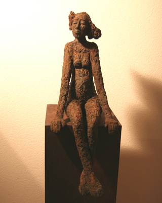 Sitzende, Zement, patiniert, 80cm hoch