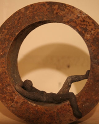 Detail eines Eisenständers, 170cm, Ring 15cm Durchmesser, Figur Schwarzbrand